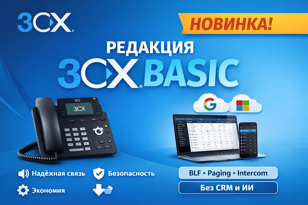Новая редакция 3CX Basic идеально подходит для компаний, которым нужна стабильная голосовая связь без лишних функций. Если вам важны безопасность, управляемость и базовые функции телефонии, но не нужны ИИ или интеграция с CRM — Basic станет оптимальным выбором.