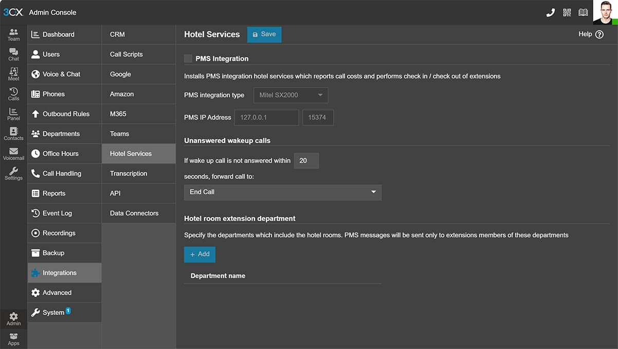 Поддерживает ли 3CX интеграцию с гостиничными системами (PMS)?