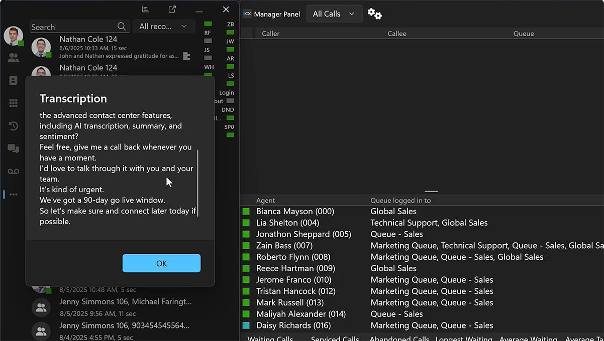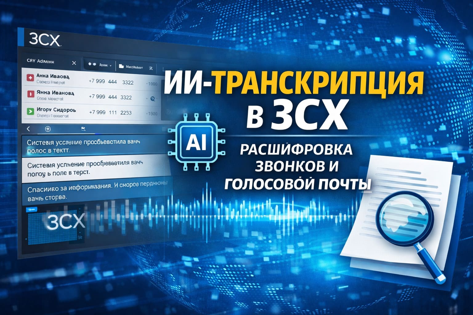 ИИ-транскрипция в 3CX — точные стенограммы звонков и голосовой почты